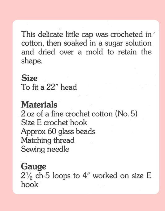Vintage Crochet Pattern Womens Beaded Juliet Cap Net Style Hat PDF Instant Digital Download Glass Beads Cotton Thread