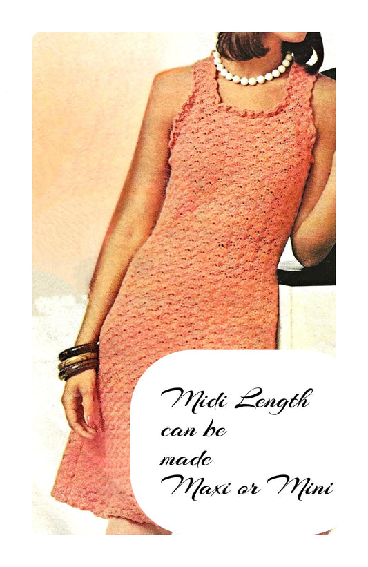 Vintage Crochet Pattern Retro Womens Diamond Eyelet Mini Dress PDF Instant Digital Download Sleeveless Summer V Neck 5 Ply