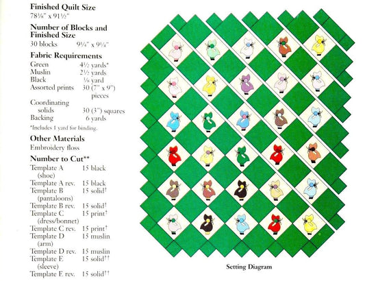 Vintage Sewing Pattern Sunbonnet Sue Windblown Girl Bed Quilt PDF Instant Digital Download Patchwork Applique Blocks Bedspread 78x91
