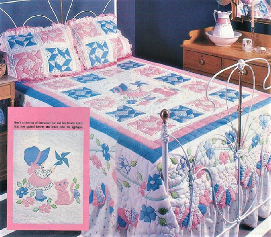 Vintage Sewing Pattern Sunbonnet Sue Quilt & Pillow Shams Set PDF Instant Digital Download Dresden Plate Patchwork Applique Bedspread 92x87
