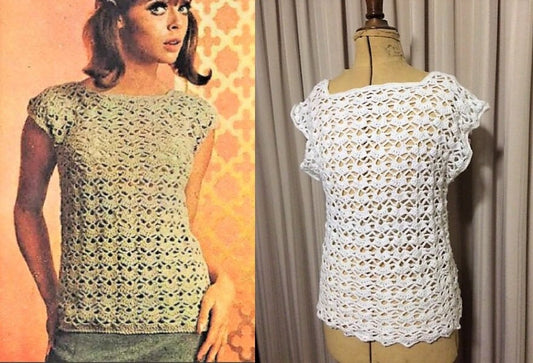 Vintage Crochet Pattern Womens Lacy Fan Stitch Summer Top and Short Skimmer Dress PDF Instant Digital Download Retro Boho Chic DK 8 Ply