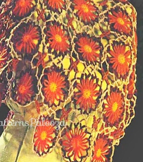 Vintage Crochet Pattern Womens Lacy Daisy Flower Wheels and Stars Poncho Cape PDF Instant Digital Download Boho Gypsy Hippie Chic 5 Ply