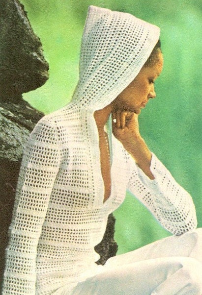Vintage Crochet Pattern Womens Openwork Lace Hooded Pullover Filet Hoodie Top PDF Instant Digital Download Retro Boho Wear S M L