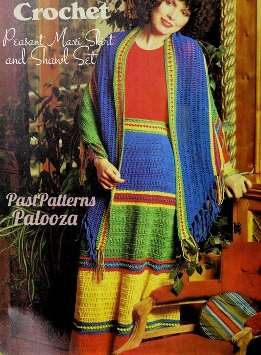 Vintage Crochet Pattern Womens Peasant Maxi Skirt and Boho Shawl Set PDF Instant Digital Download Hippie Gypsy Chic 5 Ply