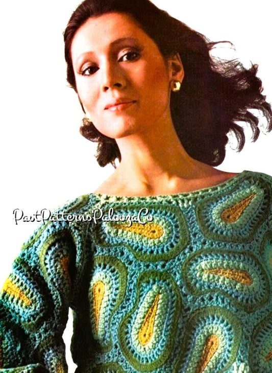 Vintage Crochet Pattern Womens Paisley Motif Blouse Crop Top PDF Instant Digital Download Retro Boho Hippie Chic 10 Ply