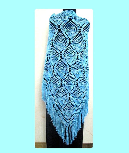 Vintage Crochet Pattern Womens Pineapple Lace Shawl PDF Instant Digital Download Boho Tasseled Wrap 4 Ply