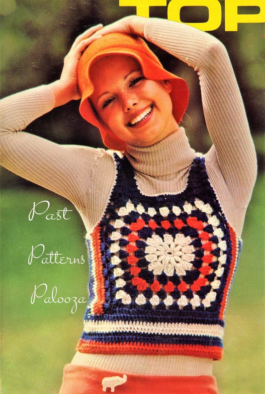 Vintage Crochet Pattern Womens Postage Stamp Vest Granny Square Rib Tickler Tank Halter Top Retro Shrink PDF Instant Digital Download 5 Ply