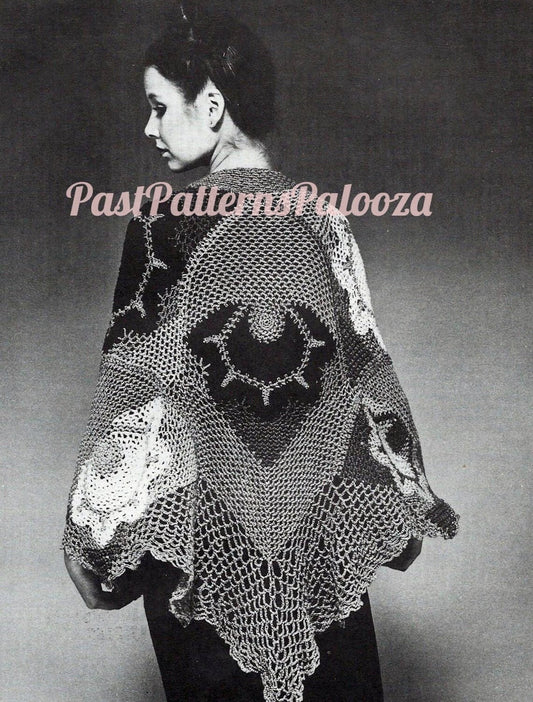 Vintage Crochet Pattern Womens Pretty Art Flower Shawl PDF Instant Digital Download Lacy Wrap Boho Lace Cabbage Rose Cotton Thread