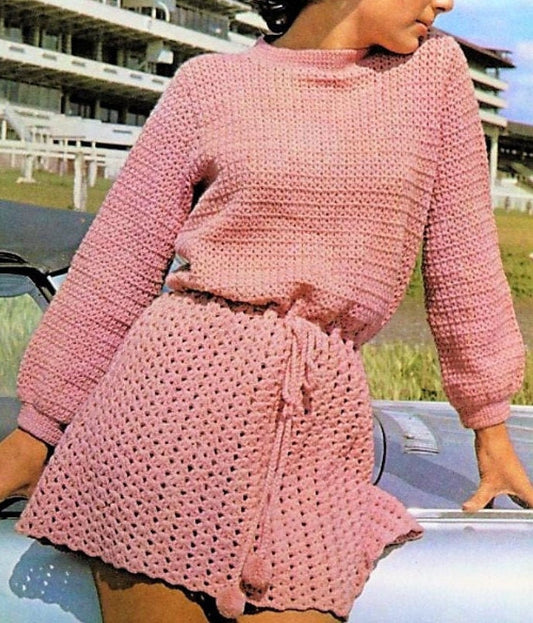 Vintage Crochet Pattern Womens Pretty Blouse Topped Dress PDF Instant Digital Download Cinched Waist Treble Shell Stitch 4 Ply 1971