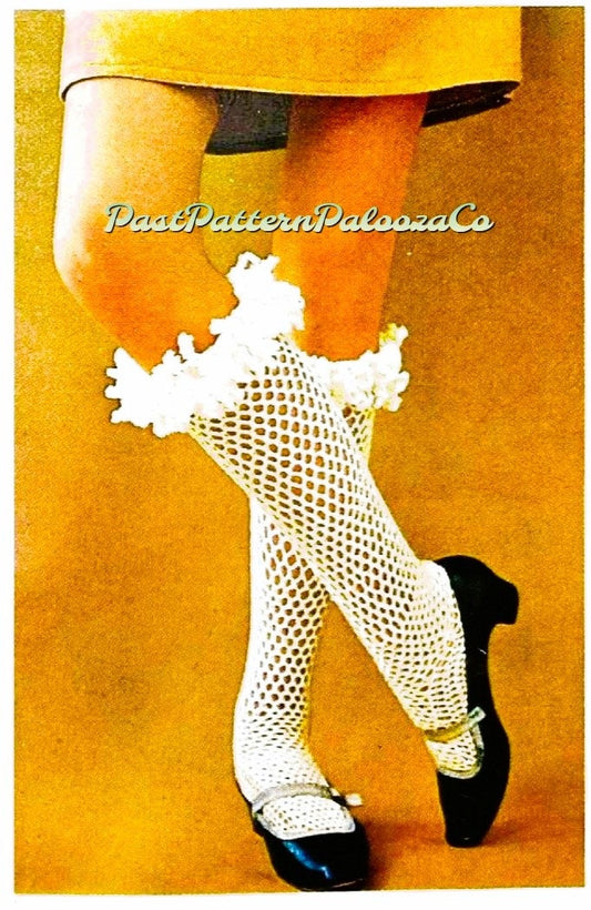 Vintage Crochet Pattern Womens Pretty Fish Net Knee Socks Loopy Trim PDF Instant Digital Download Retro Coquettish Ruffle Stockings 5 Ply