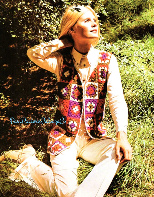 Vintage Crochet Pattern Womens Retro Classic OG Granny Square Motif Waistcoat Vest PDF Instant Digital Download Hippie Boho Chic DK