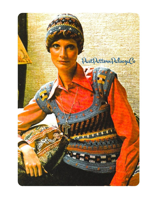 Vintage Crochet Pattern Womens Retro Boho Sweater Top and Hat Sets PDF Instant Digital Download Short Jumpers Hippie Boho Chic 5 Ply
