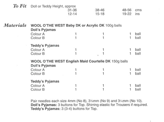 Vintage Doll and Teddy Knitting Patterns Pyjama Party Outfits PDF Instant Digital Download 12-22 Inch Dolls or Bears DK