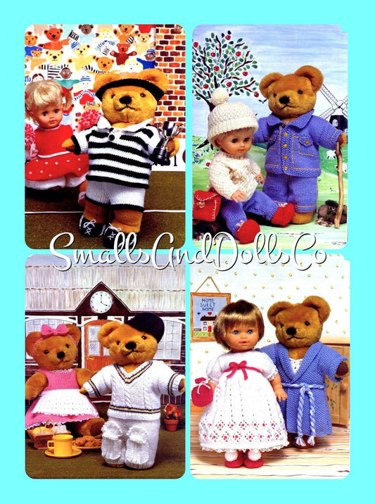 Vintage Doll and Teddy Knitting Patterns 12 Best of Friends Outfits PDF Instant Digital Download 12-22 Inch Dolls or Bears DK