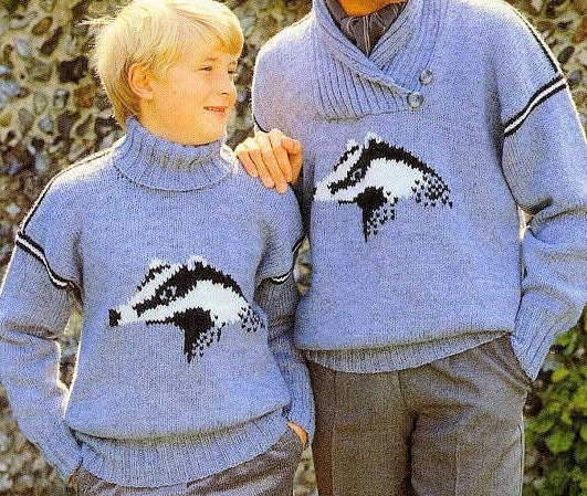 Vintage Knit Badger Pullover Sweater Knitting Pattern Mens Crossover Neck Sweater Boys Turtleneck Sweater PDF Instant Digital Download