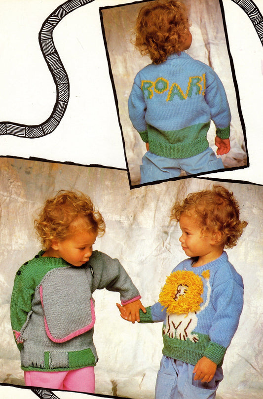 Vintage Kids Knit Safari Animal Sweaters Knitting Patterns Book PDF Instant Digital Download Zoo Pullovers Zebra Lion Giraffe Monkey 10 Ply