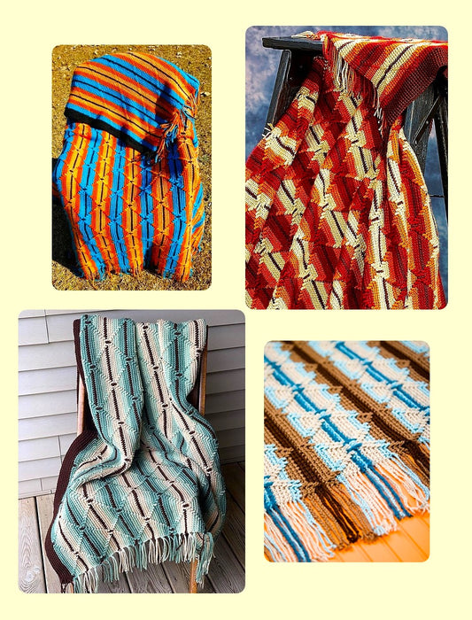 Vintage Crochet Afghan Painted Desert Sunset Blanket Pattern PDF Instant Digital Download Tunisian Stitch Aran 10 Ply
