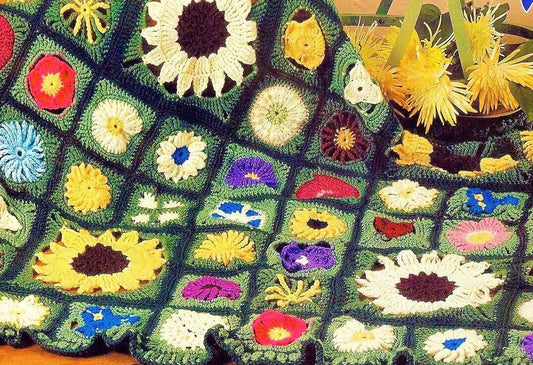 Vintage Crochet Afghan Pattern Beautiful Garden Flowers Wildflowers Granny Square Medley PDF Instant Digital Download 26 Different Florals