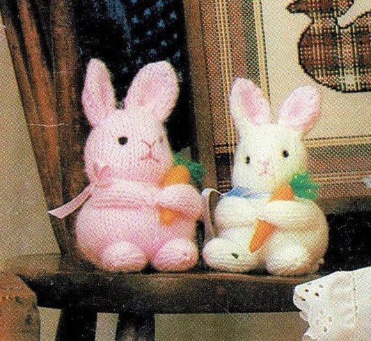 Vintage Knitting Pattern 7" Baby Easter Bunnies Quick Easy Knit PDF Instant Digital Download Knitted Bunny Rabbits Amigurumi Soft Toys 4 Ply