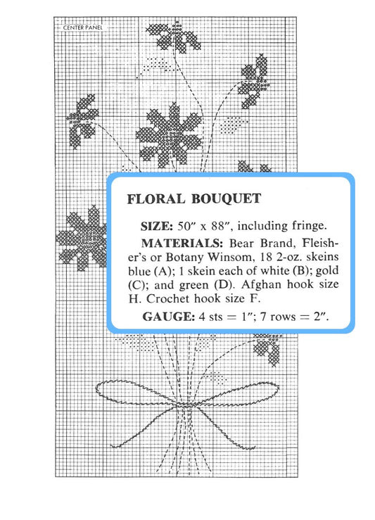 Vintage Crochet Afghan Pattern Daisies Flowers Blanket Tunisian Stitch PDF Instant Digital Download Embroidered Floral Motif Design