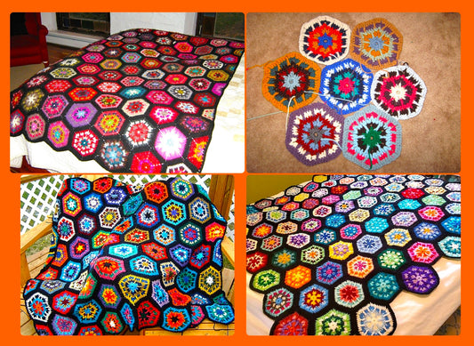 Vintage Crochet Afghan Pattern Kaleidoscope Hexagon Granny Squares PDF Instant Digital Download Beautiful Motifs 2 Designs 45x65 10 Ply