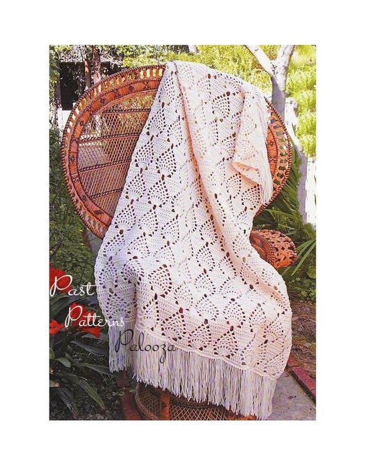 Vintage Crochet Afghan Pattern Fringed Pineapple Throw PDF Instant Digital Download Lacy Pineapples Motif Blanket Design 41x58 10 Ply