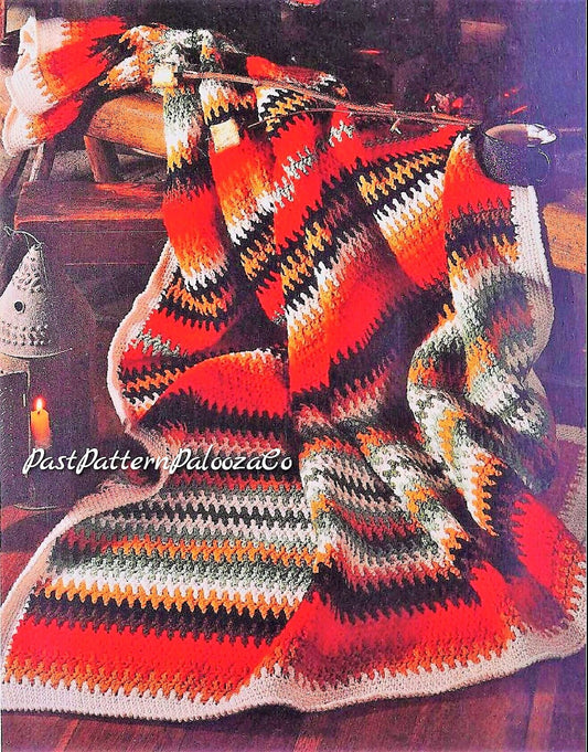 Vintage Crochet Afghan Pattern Cozy Campfire Indian Blanket PDF Instant Digital Download Navajo ZigZag Striped Throw 10 Ply
