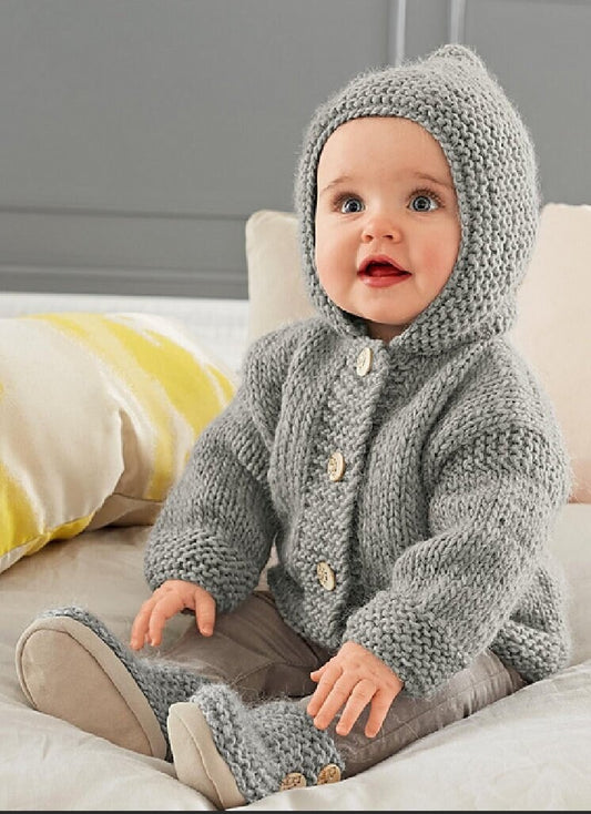 Vintage Knitting Pattern Baby Pixie Hoodie Hooded Jacket & Booties Set Chunky Easy Knit PDF Instant Digital Download 3-24m 12 Ply