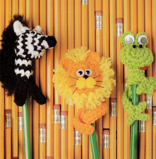 Vintage Crochet Animal Pencil Toppers Pattern PDF Instant Digital Download Amigurumi Critters Pencil Decorations 19 Designs 10 Ply