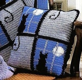 Vintage Crochet Cat In The Window Afghan & Pillow Pattern PDF Instant Digital Download Black Cats Moonlight Windows Motif Square Blanket