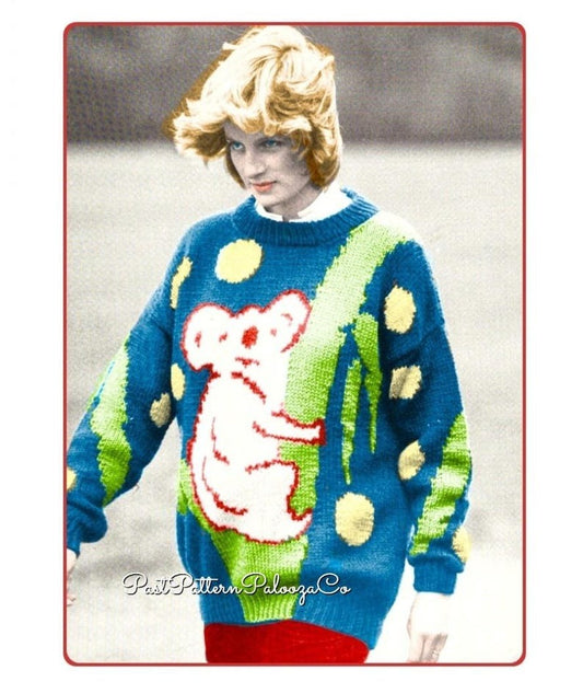 Vintage Knitting Pattern Lady Koala Bear Sweater Novelty Jumper PDF Instant Digital Download Australia Animal Pullover 80s Princess Diana