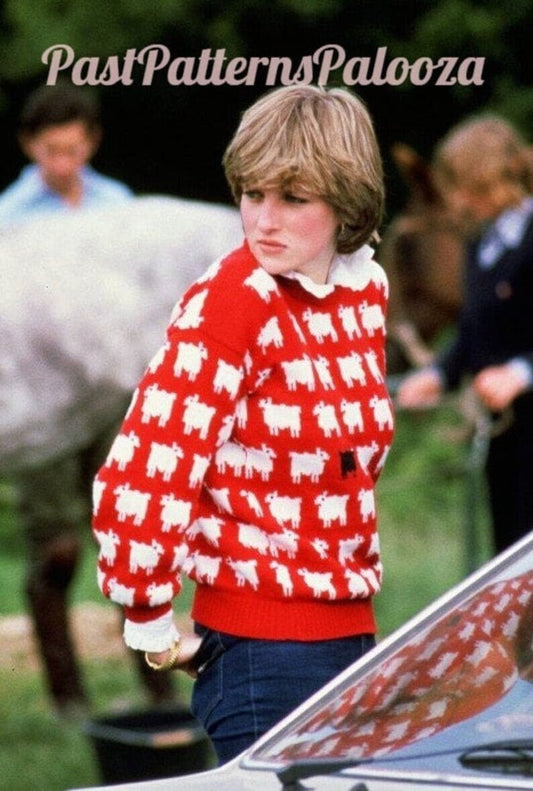 Vintage Knitting Pattern Lady Di Black Sheep Sweater Christmas Novelty Jumper PDF Instant Digital Download Pullover 80s Princess Diana 4ply