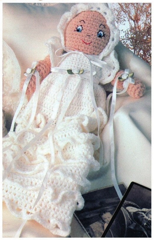 Vintage Crochet Pattern 10" Baby Doll Newborn Amigurumi Christening Dress PDF Instant Download Heirloom Dolly Soft Plush Toy 10 Ply
