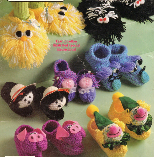 Vintage Crochet Patten Childs Kids Bunny and More Slippers Fuzzy Animals Monster Clown Designs PDF Instant Digital Download 10 Ply