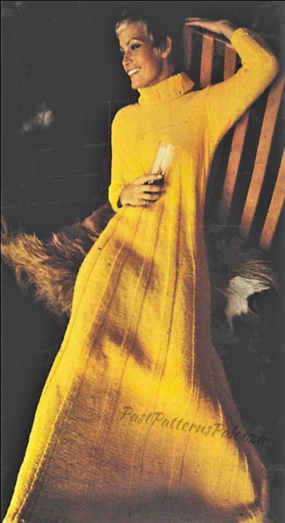 Vintage Knitting Pattern Womens Evening Turtleneck Maxi Dress PDF Instant Digital Download Long Retro Ribbed Floor Length Dress 8 Ply