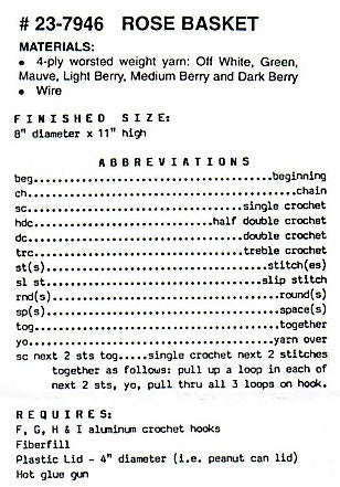 Vintage Crochet Pattern 11" Roses Flower Basket Milk Glass PDF Instant Digital Download 4 Ply
