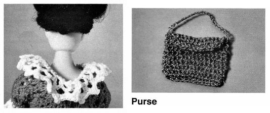 Vintage Crochet Pattern 11.5" Christmas Fashion Doll Dress Holiday Outfit PDF Instant Digital Download Mini Purse