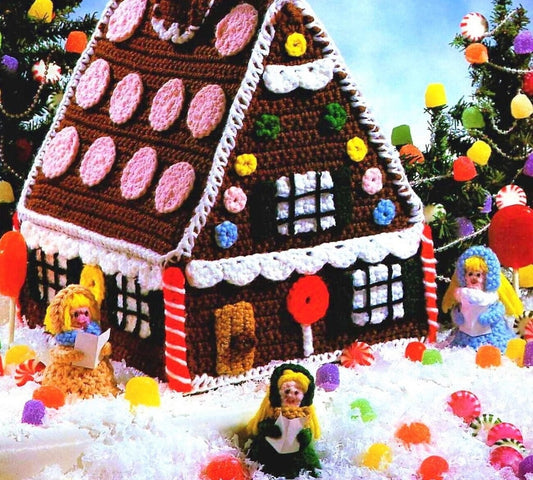 Vintage Crochet Pattern 12" Christmas Gingerbread Cookie House with Caroler Dolls Display Centerpiece PDF Instant Digital Download 4 Ply