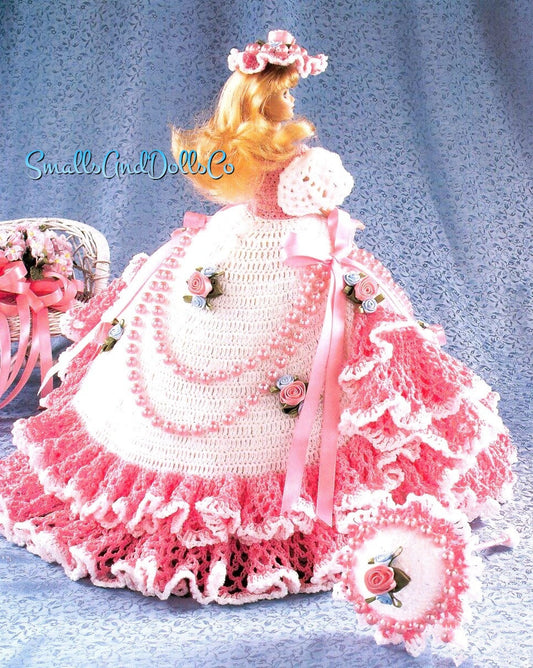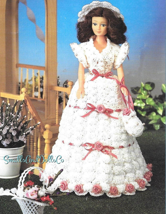 Vintage Crochet Pattern 11.5" Fashion Doll Pretty Garden Party Dress Outfit PDF Instant Digital Download Roses Ribbons Embellished Gown Hat