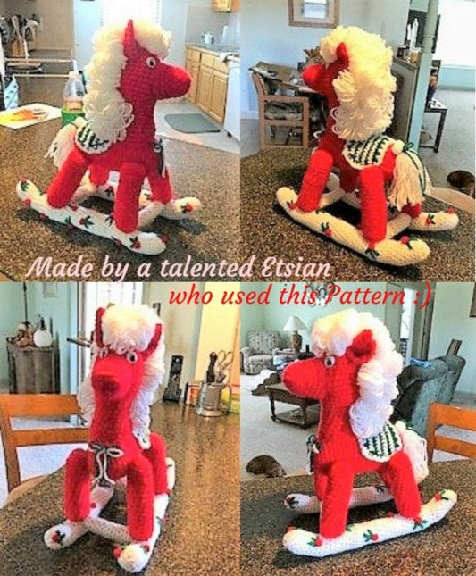 Vintage Crochet Pattern 12" Christmas Rocking Horse Amigurumi Centerpiece PDF Instant Digital Download Decor or Stuffed Toy Rocker 4 Ply