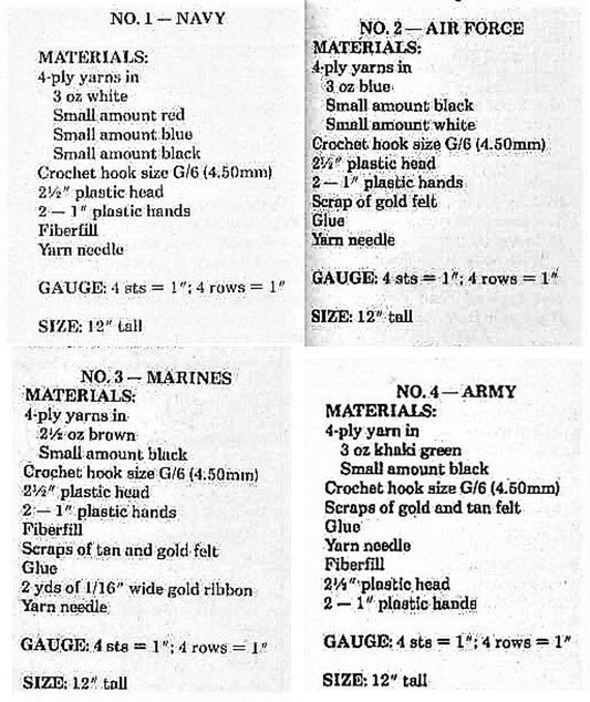 Vintage Crochet Pattern 12" Military Soldier Dolls Soft Amigurumi Toys Army Navy Air Force Marines PDF Instant Digital Download 4 Ply
