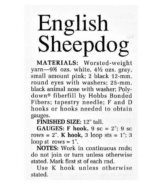 Vintage Crochet Pattern 12" English Sheepdog Dog Soft Toy Doll PDF Instant Digital Download Loop Stitch Mr. Mugs Plush Purebred 10 Ply