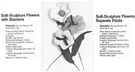 Vintage Sewing Pattern 10" Calico Gingham Fabric Flowers PDF Instant Digital Download Plush Soft Sculpture Flowers with Stamens Spring Decor
