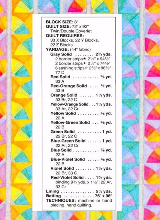 Vintage Quilt Sewing Pattern Rainbow Fans Bedspread PDF Instant Digital Download Patchwork Piecing Twin Double Bed 72x92