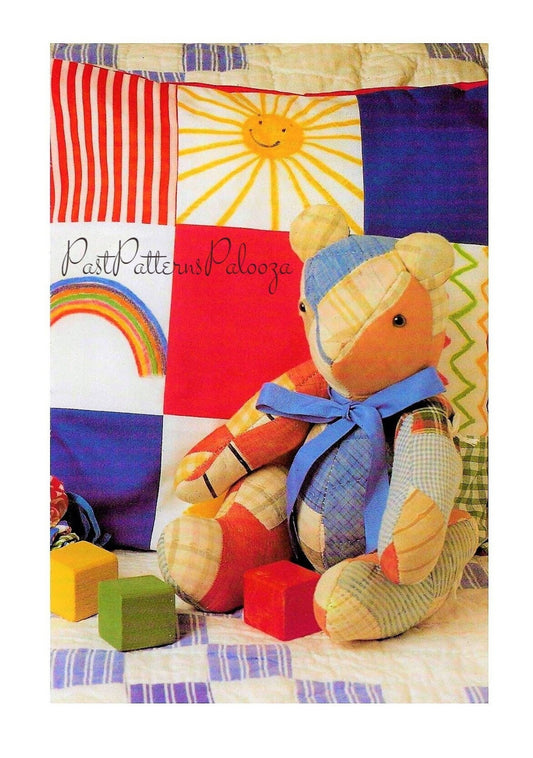 Vintage Sewing Pattern 15" Patchwork Fabric Memory Bear Jointed Traditional Teddy PDF Instant Digital Download Soft Stuffed Toy