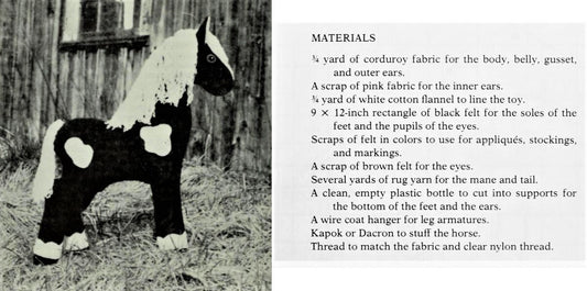 Vintage Sewing Pattern 18" Plush Pinto Pony Horse Corduroy Fabric Soft Toy PDF Instant Digital Download Sewn Realistic Farm Animal