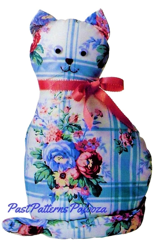 Vintage Sewing Pattern 18" Pretty Kitty Floral Chintz Fabric Cat Toy Pillow Doll PDF Instant Digital Download Sewn Soft Country Cat