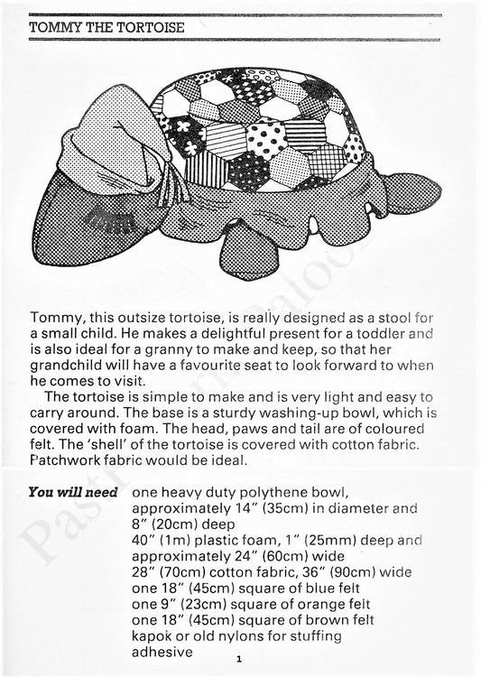 Vintage Sewing Pattern 21" Sleepy Turtle Toy or Footstool PDF Instant Digital Download Tortoise Pouffe Cotton Fabric