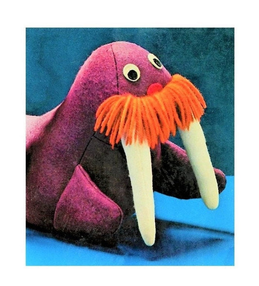 Vintage Sewing Pattern 21" Retro Felt Fabric Walrus Soft Sculpture Plush Toy PDF Instant Digital Download Arctic Animal Kitsch Yarn Mustache