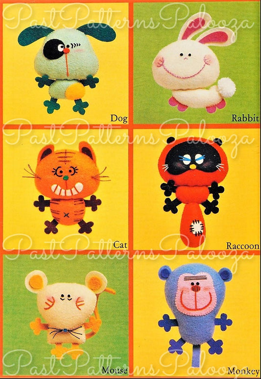 Vintage Sewing Pattern 3" Mini Cute Animals 12 Felt Soft Doll Figures PDF Instant Digital Download Puppy Panda Pig Frog Cat Bunny and More